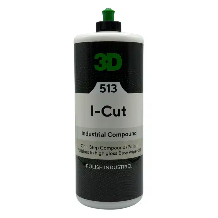 Полир паста 3D I-Cut Industrial Compound е промишлен клас, бързо режеща с едноетапна смес и лак, предназначени за производствени цехове с голям обем, където скоростта и ефективността са основен приоритет. I-Cut е чудесно решение за бързо премахване на петна от шкурка със способността си да осигури дълъг цикъл на полиране или отворено време, което се изтрива лесно.