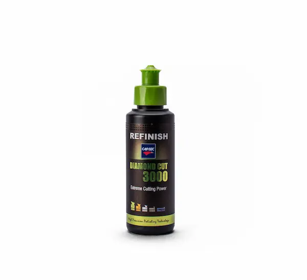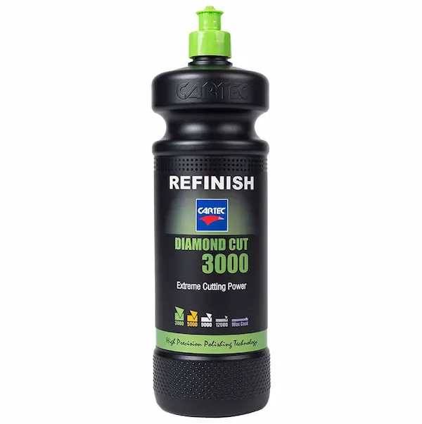 Cartec Diamond Cut 3000 е супер бърза и силно абразивна полираща паста. Подходяща е за керамични, устойчиви на надрасквания(SR) лакове. Пастата лесно премахва всички следи от шкурки( P1500/P2000), дълбоки драскотини, портокалова кора, стичания, overspray.