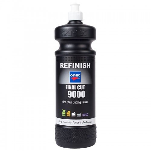 Final Cut 9000 е прецизна финална, едностъпкова, полираща паста. Перфектна за премахване на малки драскотини, кръгови следи и холограми. Може да се използва с ротационна или орбитална полираща машина. Final Cut 9000 , не съдържа филери, силикони или амоняк. Да се използва след Diamond Cut 3000 / Compound 5000 с цел премахване на холограмите или самостоятелно за премахване на малки драскотини и холограми от лаковото покритие.