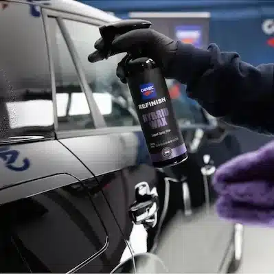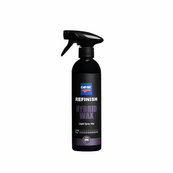 Cartec Refinish Hybrid Wax Liquid Spray Wax е продукт, предназначен за професионално полагане на восък върху автомобилни лакове. Този спрей предлага изключителен, огледален блясък за както нови, така и полирани повърхности, гарантирайки безупречни резултати. Подходящ е за различни типове повърхности, включително специализирани покрития като фолио, защитни филми за боя (PPF). Формулата е без силикон, което го прави безопасен за използване в автосервизи, без да пречи на последващите процеси на боядисване. Cartec Hybrid Wax е лесен за нанасяне с микрофибърна кърпа, бързо изсъхва и предлага дълготрайна защита срещу външни фактори, като същевременно улеснява отстраняването на леки замърсявания и отпечатъци от пръсти без да оставя маслени следи. Той е идеален за поддържане на високото качество на автомобилната боя, осигурявайки професионални резултати с минимални усилия.